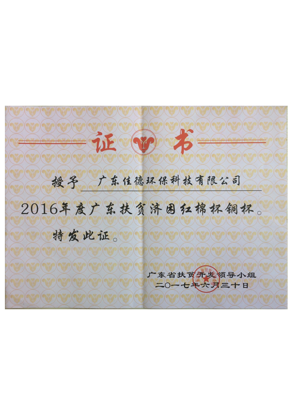 2016年度廣東扶貧濟困紅棉杯銅杯