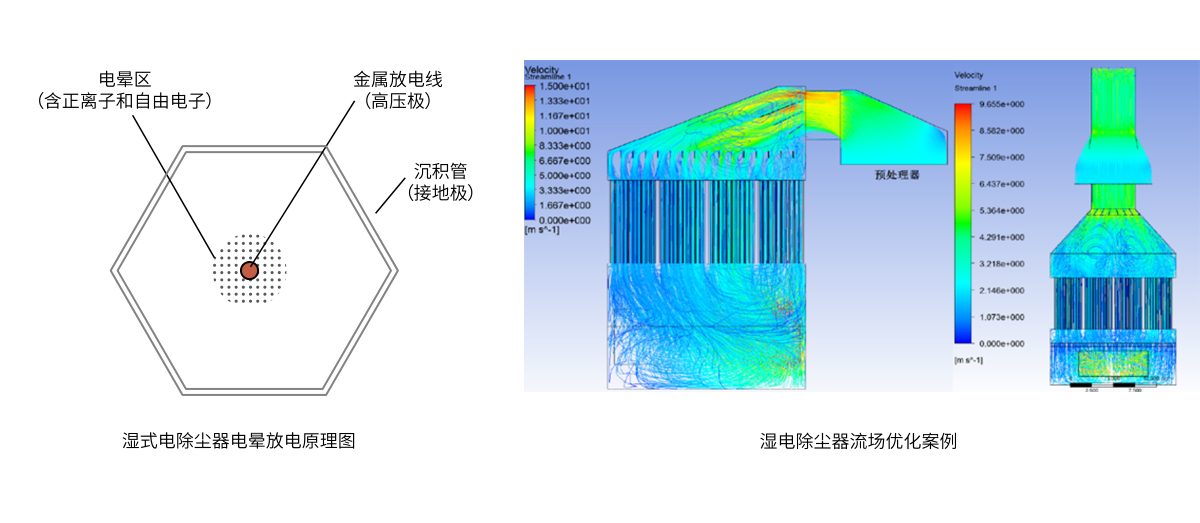 濕式電除塵器(qì)工(gōng)作原理:通(tōn靜中g)過靜電控制裝置和直流高壓發生裝置,以高壓直流電送至濕式電除塵裝置中筆村,在電暈線(陰極)和捕集極闆(陽極)之間形成強大(dà)的電場拍坐,放電極産生電暈放電,使空氣分子(zǐ)被電離,瞬間産生大(dà)量員匠電子(zǐ)和正、負離子(zǐ)。煙氣中的微粒通(tōng)過該空南厭間時(shí),被強制荷電,粒子(zǐ)間産生凝并,在電場力作用下作定向運動還著,達到捕集目的。濕式電除塵器(qì)可高效除去0關腦.01-100μm 的氣溶膠細微顆粒物,實現對煙氣中液态或固态顆粒物、務間氣溶膠、SO₃等的高效去除。