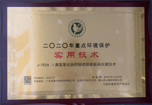喜訊(xùn)!廣東佳德環保科(kē)技有限公司“J-TECH Ⅱ臭氧氧化協同西上吸收脫硫脫硝關鍵技術”入選中環協2020重點環境保護實用技術