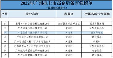 祝賀“佳德環保”從全市1.2萬多家(jiā)侯選高新技術企業中脫穎而出,通一入圍廣州市拟上市公司後備百強榜單!